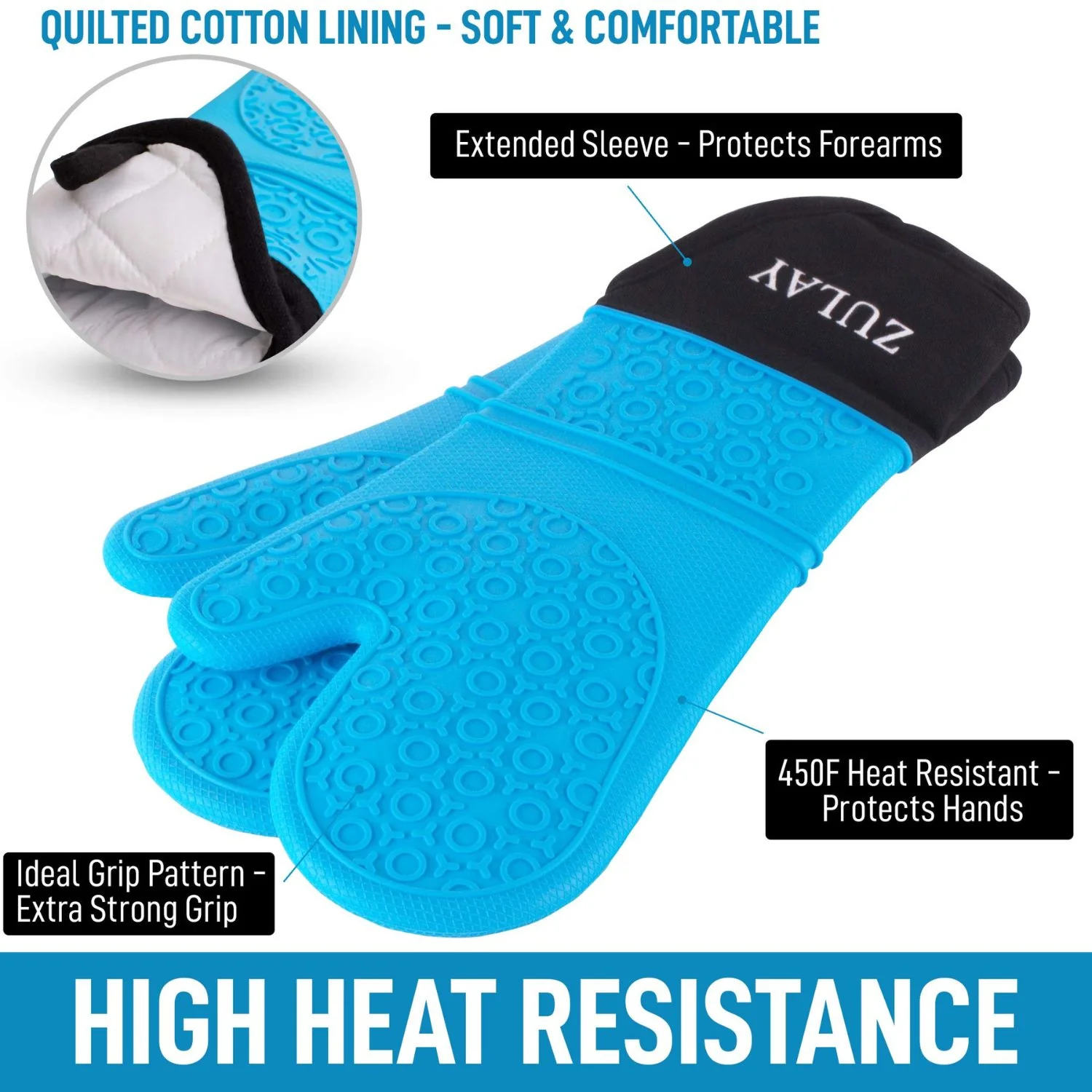 Heat Protection: Withstands temperatures up to 450°F for safe handling.