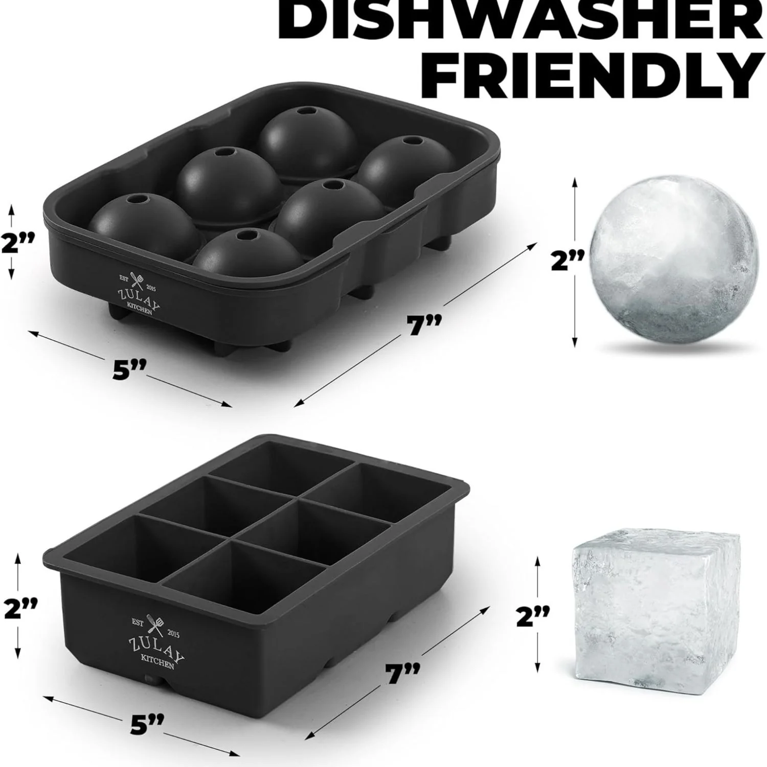 Long-Lasting Ice: Creates 6 large 2-inch cubes and 6 1.8-inch spheres for slower melting.